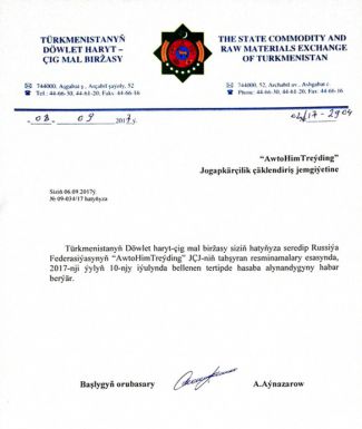 продажа нефтепродуктов, брокер на ГОСУДАРСТВЕННОЙ ТОВАРНО-СЫРЬЕВОЙ БИРЖЕ ТУРКМЕНИСТАНА за №0803. Международные перевозки.